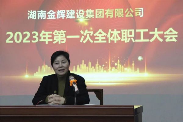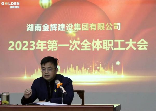2月2日下午,湖南金輝建設集團有限公司(簡稱:金輝建設集團)在總部六樓會議室組織召開全體職工大會。金輝建設集團董事長何玄出席會議并發表講話,總經理雷泓作工作報告,金輝建設集團領導班子及全體員工,華普置業公司職工代表參加會議。